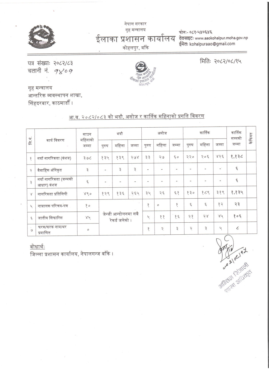 आ.व. २०८२/०८३ को भदौ, असोज र कार्तिक महिनाको विवरण