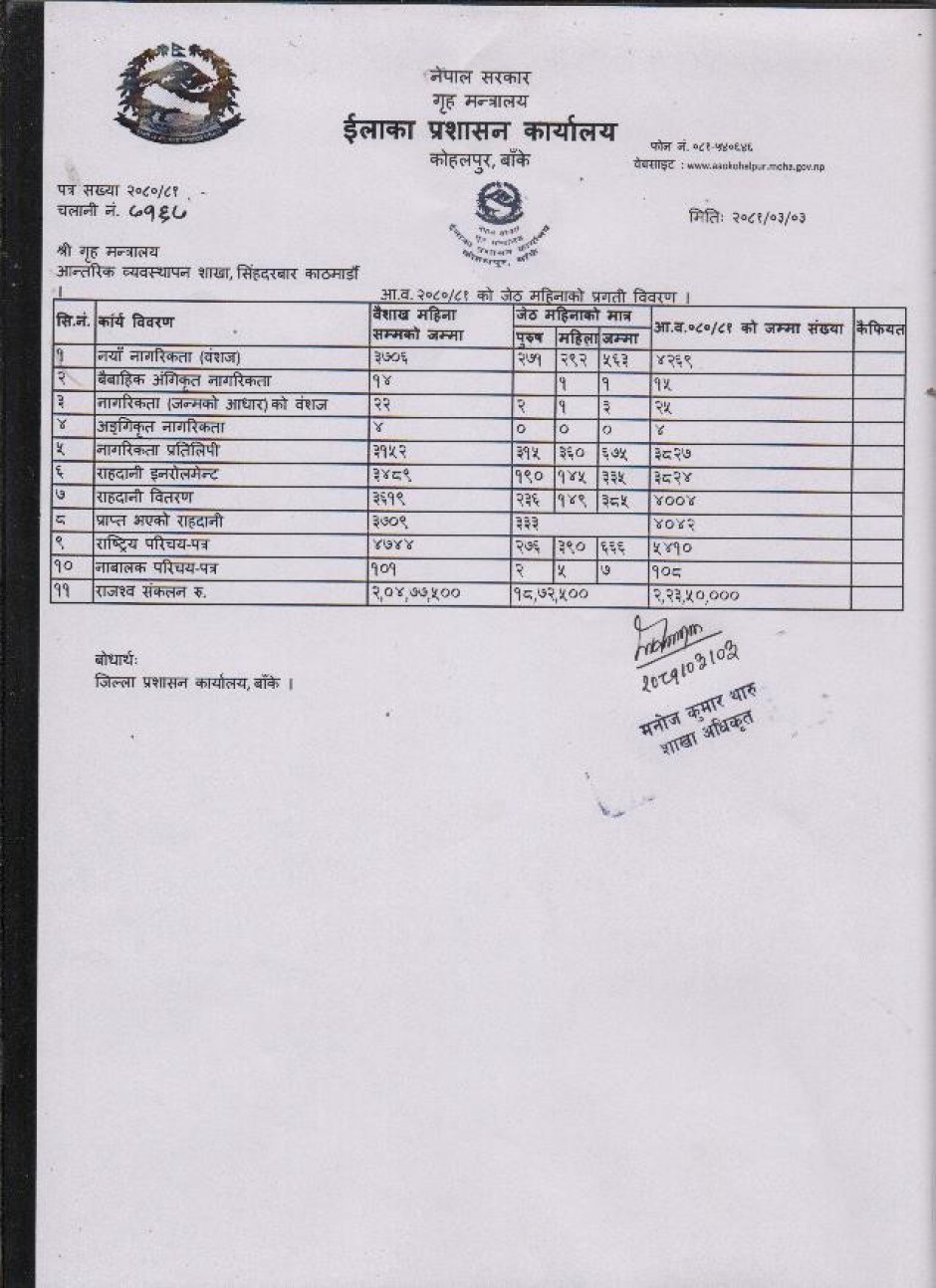 © सर्वाधिकार सुरक्षित ईलाका प्रशासन कार्यालय, कोहलपुर, बाँके .