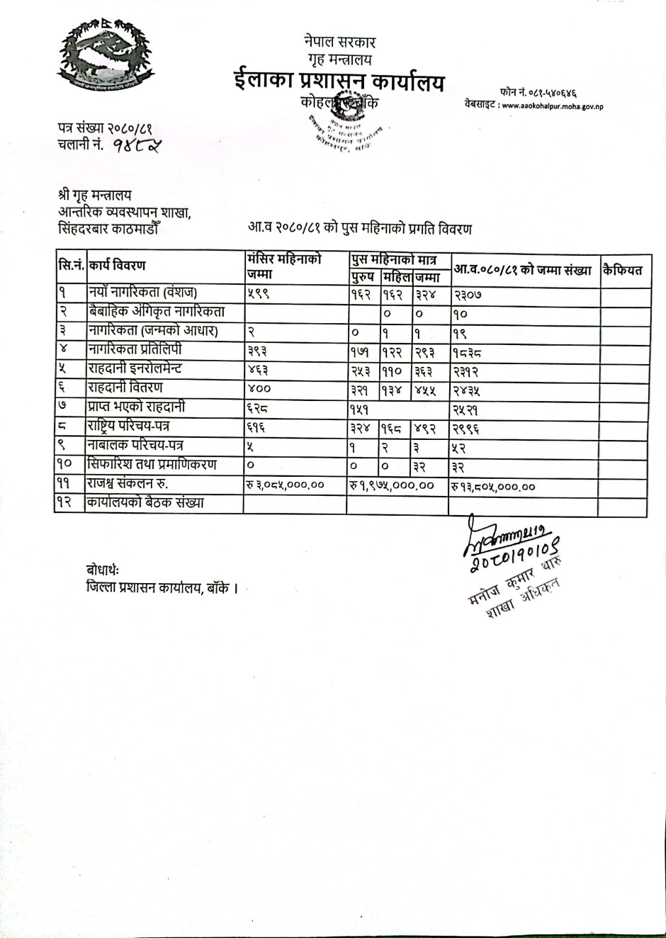 तस्बिर : पुष महिनाको प्रगति विवरण