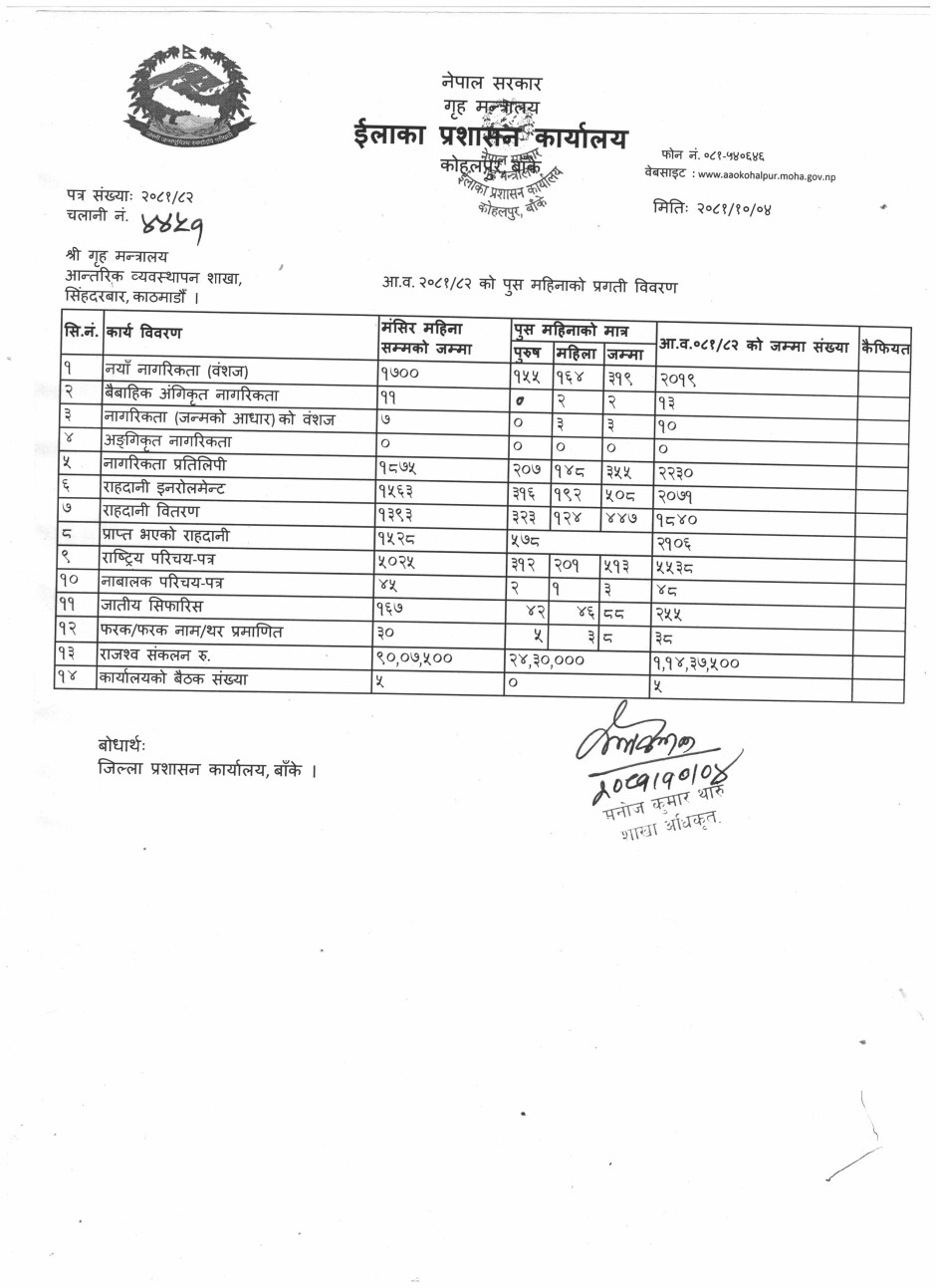 आ.व. २०८१/८२ को पुष महिनाको प्रगति विवरण