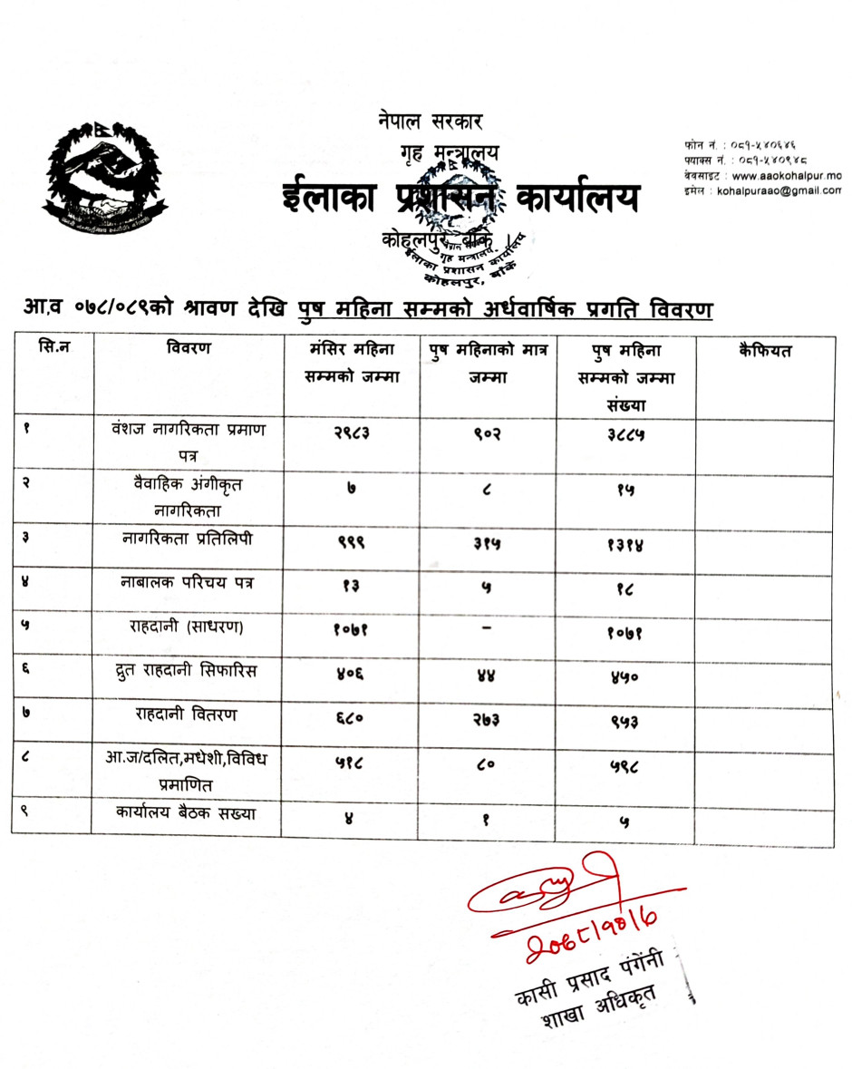 २०७८ पुष महिना सम्मकाे अर्ध वार्षिक प्रगति विवरण