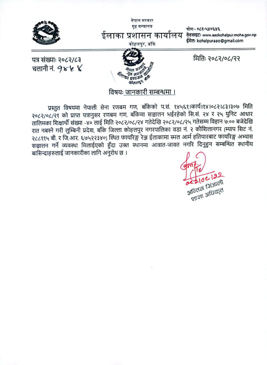 © सर्वाधिकार सुरक्षित ईलाका प्रशासन कार्यालय, कोहलपुर, बाँके