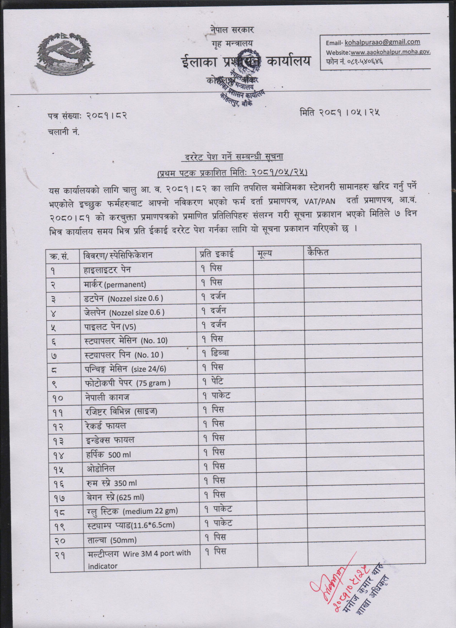 कोहलपुर क्षेत्र भित्र पर्ने कार्यालयहरुको सम्पर्क नम्बरहरु
